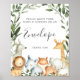 Dê aos seus hóspedes uma direção encantadora com nossos animais de safari que se dirigem a uma placa de envelope, com cores aquáticas verde eucalipto garland e uma elegante fonte de estilo manuscrito.