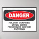 Um sinal de entrada avisando o perigo de espaço confinado. Esta design parece realmente eficaz nesta Poster