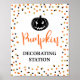 O sinal da ESTAÇÃO DE DESCORAÇÃO PUMPKIN apresenta um design de confete cor laranja, preto e dourado assustador para a sua festa temática de Halloween.