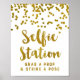 Sinal de estação de selfie pôster para chá de bebê, chá de noiva ou casamento em padrão de confete branco e dourado com letras em estilo manuscrito. Perfeito para um chá de bebê, casamento ou chá de noiva.
