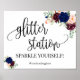 Poster Sinal de estação Glitter marinho bô chá de panela