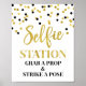 Sinal de poster de estação selfie para chá de bebê, chá de lingerie ou casamento em branco com um padrão de confete glitter dourado e preto com letras em estilo manuscrito. Perfeito para um chá de bebê, casamento ou chá de lingerie.