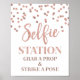 Sinal de estação selfie pôster para chá de bebê, chá de lingerie ou casamento em branco com um padrão de confetes rosa dourado com letras em estilo manuscrito. Perfeito para um chá de bebê, casamento ou chá de lingerie.
