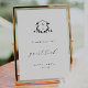 Elegante botânico adorado estilo vintage monograma de casamento em preto e branco, poster do livro de convidados de casamento.