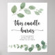 Este sinal de vela queima eucalipto verde delícia é perfeito para um casamento simples. O design apresenta ramos e folhas de eucalipto botânico elegante desenhado à mão com aquarela.