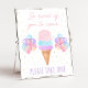 Este sinal adorável será um excelente adicional a uma festa temática sorvete. Enquadre o sinal e mostre-o na sua mesa a favor do partido. O design apresenta sorvete de cor d'água colorido do arco-íris pastel com falso confetti de folha de ouro.