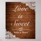 O amor é doce, Pegue um Tratamento sinal de casamento. Estilo rústico com fundo de tábuas de madeira e decoração de renda branca. Mais itens estão disponíveis neste estilo em nossa loja. Você pode editar o design ainda mais, alterar cores, fontes e adicionar texto extra clicando no link "personalizar ainda mais".