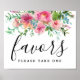 Convide seus convidados de casamento para fazer um favor com esta placa de casamento de na moda e mesa elegante. Ele apresenta uma borda ao longo da parte superior que contém peões cor-de-rosa e magenta. Isso é perfeito para um casamento de primavera ou verão. As peônias cor-de-rosa suave adicionam um toque romântico e as flores azuis lacrimogêneas dão-lhe uma vibração moderna. Muitas folhas verdes e perigos dão-lhe uma nova aparência de Boho. Os favores são escritos em uma letra de moda e quadril que é muito popular. Uma linha de texto adicional que permite personalizar esta placa de casamento DIY. Esta é parte do pacote de sinais de casamento Pink Peony que tem muitos componentes. Por favor, entre em contato comigo, se precisar de ajuda para encontrar um item de coordenação.
