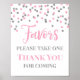 Sinal de favor para chá de bebê, chá de noiva, festa de aniversário ou casamento em padrão de confete rosa e prata. Por favor, note que o efeito de brilho é apenas efeito fotográfico.