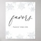 Favorece o sinal que apresenta uma ilustração dos fetos de neve com falso cintilação prateada com a palavra "favores" em uma escrita caligráfica divertida.