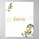 Sinal de favores de flor silvestre apresenta caligrafia moderna em dourado falso, flores em aquarela e fundo branco. Este sinal também está disponível com a letra em preto. Veja a coleção para produtos coordenados.