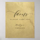 Um símbolo de favor de casamento preto e ouro elegante com detalhes caligráficos modernos graciosos e escritos à mão e impressão de folha de ouro atraente. 8" x 10" é apenas o nosso tamanho predefinido, sinal disponível numa variedade de tamanhos. Fácil de emoldurar ou colar/grampear a MDF barato. Parte da nossa "Coleção de Casamentos de Monogramas Pretos e Dourados" com uma variedade de produtos coordenadores disponíveis. Visite a coleção inteira em: https://www.zazzle.com/collections/black_and_gold_monogram_wedding_collection-119092477004367833