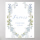 Favorece Sinal com borda aquarela de flores azuis para corresponder à coleção encontrada no Compro Adore Paper Co. Zazzle. Personalize com seu texto para ajustado das necessidades do seu partido!