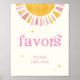 Acelere seu chá de fraldas com nosso Sinal de "Favores" Sunshine! Este design boho apresenta uma aquarela solar, tipografia retrorativa e sotaques, todos colocados contra um fundo branco suave. Com seu esquema brilhante e feminino de cor rosa, pêssego e amarelo, ele define o tom perfeito para celebrar seu pequeno raio de sol no caminho. Os convidados diretos aos seus favores com este charmoso sinal, assegurando que eles saiam com um símbolo da vossa apreciação e lembranças amáveis do vosso dia especial.