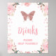 Sinal de Festa de aniversário de Bebida da Borboleta Glitter Rosa Sinal de festa de aniversário da borboleta Doce Sinal de com o tema da borboleta, apresentando duas adoráveis disposições florais cor-de-água rosa e borboleta cinzenta rosada falsa. Este doce sinal de aniversário de borboletas design é uma adição fofa para as suas meninas, borboletas, tema da primeira festa de aniversário.