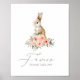 Convide os convidados de festa de aniversário a fazerem um favor com este cartaz, com flores cor d'água cor-de-rosa e coelho.