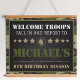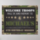 Chamando todas as tropas! Preencha a decoração e uau a todos na sua festa de aniversário de operação especial com um sinal de modelo. Esta placa de aniversário do exército camo apresenta verduras militares e cores de camuflagem em um estilo personalizável de design.