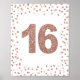 Sinal NÚMERO 16 com um belo rosa dourado design de confetti. Perfeito para seu doce 16 ou 16 anos.