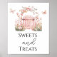 Poster Sinal de Festa de Bebês Floral Rosa e Doces e Trat
