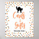O sinal CARDS & GIFTS apresenta um design de confete cor de laranja, preto e dourado assustador para a sua festa de Halloween.