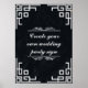 Este é o quadro-negro, placa de festa de casamento de borda decorativa de espiral floral floral branca com suas próprias palavras.