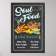 Chalkboard Soul Comida para a próxima festa. Possui galinha e waffles, macaco e queijo, pão de milho e outros itens. Toda a redação pode ser alterada sob as imagens da comida.