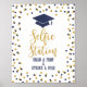 ESTAÇÃO SELFIE - PEGUE UM ADEREÇO & FAÇA UMA POSE Sinal de festa de formatura com um design de confetes brilhantes em azul marinho e dourado.