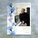 Um sinal de memorial de funeral de foto floral azul elegante de celebração de vida. Projetado por Thisisnotme©