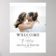 Sinal de boas-vindas de casamento com uma foto horizontal do casal. Escolha qualquer cor de fundo, altere as cores do texto etc., na ferramenta de edição.