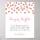 Use nosso sinal de fralda cor-de-rosa e dourada com seu chá para avisar aos convidados para onde deixar seus ingressos. Certifique-se de procurar os nossos bilhetes de rifle de fralda coordenados vendidos separadamente. Por favor, note que o brilho é um brilho falso e é um gráfico de alta qualidade que fará parte do que é impresso e é feito para imitar o brilho real. Não está incluída uma falha real.