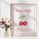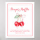 Adicione um toque doce ao seu chá de fraldas com este cartaz de rifa de fralda de cereja. Apresentando cerejas vermelhas aquáticas amarradas com um arco cor-de-rosa, este sinal é uma forma perfeita de encorajar os hóspedes a trazer fraldas e a se juntar à diversão com rifa. Um detalhe encantador que combina com chás de fraldas, festas de verão ou celebrações doces.