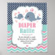 Fralda de Baleia Chic Raffle, sinal poster de Chá de fraldas com baleia mamãe e baleia bebê com bolinhas marinho e fundo de fêmur rosa e turquesa. Os itens correspondentes estão disponíveis na loja Happy Cat Studio Zazzle! (c) O feliz Cat Studio.