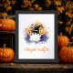 Torne o seu chá de fraldas mais divertido com este cartaz de rifa de fralda do Halloween com um fantasma de aquarela fofo, gato preto, abóboras, morcegos e estrelas brilhantes. Perfeito para chás de fraldas fofos, góticos ou caindo, este signo caprichoso convida os convidados a se juntarem à rifa de fralda no estilo. Completamente personalizável, ele adiciona um toque encantador à decoração do seu partido e à mesa do jogo.