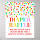 poster de sinal de rifa de fralda para chá de fraldas no padrão de confete arco-íris, perfeito para um borrifo de bebê.