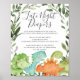 Dê aos seus hóspedes uma direção encantadora com nossos dinossauros no final da noite, o sinal de atividade do chá de fraldas fralda, com cor d'água verde eucalipto garland e uma elegante fonte de estilo manuscrito.