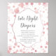 Este Poster de Chá de fraldas (Sign) branco e cor-de-rosa pálido, branco e "Fralda noturna tardia", completará perfeitamente a sua festa. Esta será uma atividade perfeita e divertida para uma doce festa de chá de menina moderna.