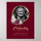 Elegante sinal de boas-vindas de funeral floral personalizado burgundy vermelho, rosa e dourado com uma moldura de foto dourada adornada com flores vermelhas burgundy e rosadas. Para pedidos personalizados, por favor envie-nos uma mensagem via chat Zazzle.