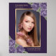Sinal de boas-vindas de celebração de vida/funeral de foto floral roxa elegante com rosas roxas e flores de respiração de bebê decorando uma foto dentro de uma moldura dourada. Itens correspondentes disponíveis.