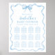 Adicione um toque de elegância ao seu chá de fraldas com nosso Sinal de Gráfico de Assento do Arco Azul Dusty. Este cartaz maravilhosamente desenhado apresenta um detalhe de arco azul suave e empoeirado no topo, criando um olhar doce e charmoso para o seu evento. A delicada paleta de cores complementa perfeitamente o chá de fraldas de um menino, fazer que seja fácil para seus hóspedes encontrar seus assentos com estilo. Personalize o gráfico com nomes e números de tabela e exiba-o como uma peça central impressionante na entrada do evento. Ideal para receber seus convidados com sofisticação e um toque pessoal.