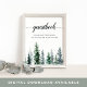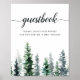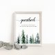 Projetado para combinar com a nossa coleção de casamento Timber Grove, esta placa de chic rustic Woodland convida convidados para o casamento para assinarem o seu livro de convidados. Personalize com duas linhas de texto personalizado no roteiro de caligrafia e na letra serif tradicional (mostrada com "Guestbook; por favor, deixe seus desejos para o novo Sr. e Sra. [name]"), com uma borda inferior de aquarelas de árvores verdes em caçador e verdes florestais.