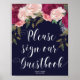 Poster sinal de guestbook de casamento - marinho rosa flo