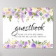 Belo design floral roxo e marfim branco. Projetado para coordenar com a Coleção Floral Roxo e Creme disponível na minha loja Zazzle, Celebrais. O livro de convidados é escrito em uma fonte ampla e moderna. Há uma saudação e instruções abaixo. Personalize-o para incluir seus próprios nomes e quaisquer pensamentos.