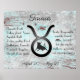 Poster Sinal de Horoscópio Taurus Traços e Datas Touro
