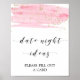 Este sinal de ideias para noite de encontro rosa em aquarela e dourado é perfeito para um casamento de tema moderno romântico e doce ou para um chá de noiva. O design feminino luxuoso apresenta uma textura de aquarela rosa claro com um toque de pó de brilho dourado falso e uma fonte de letra de caligrafia elegante.