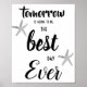 Lembre seus convidados que amanhã (o dia do seu casamento) será o melhor dia de todos com este divertido sinal temático de praia. Um item obrigatório para o jantar de ensaios do seu casamento com tema de praia! O sinal também pode ser personalizado para se adequar a qualquer tema (basta remover/alterar a estrela-do-mar para se adequar ao seu tema!)