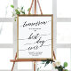Este sinal de jantar de ensaio do melhor dia preto elegante é perfeito para um casamento simples. O design neutro apresenta um pôster minimalista decorado com tipografia romântica e caprichosa. Personalize o pôster com o nome dos noivos e a data.