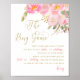 Poster Sinal de Jogo de Caligrafia Dourada Rosa Floral