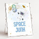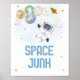 Este adorável design apresenta um astronauta, planetas coloridos e estrelas de folha de ouro falsa.