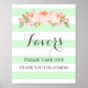 Sinal de lembranças pôster para chá de bebê, chá de noiva ou casamento em padrão de listras verde hortelã e branco com flores de cor rosa pêssego vintage em estilo de letra manuscrita. Perfeito para um chá de bebê, casamento ou chá de noiva.
