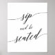 Este sinal de letra cursiva preta elegante para sentar e beber é perfeito para um casamento simples. O design neutro apresenta um pôster minimalista decorado com tipografia romântica e caprichosa.